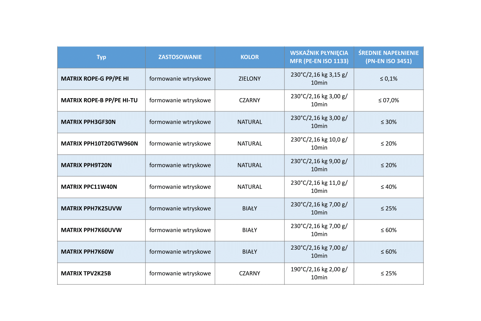 • modyfikacje właściwości: zwiększona odporność na udar, stabilizacja UV, poprawa sztywności, LS, TS i inne,